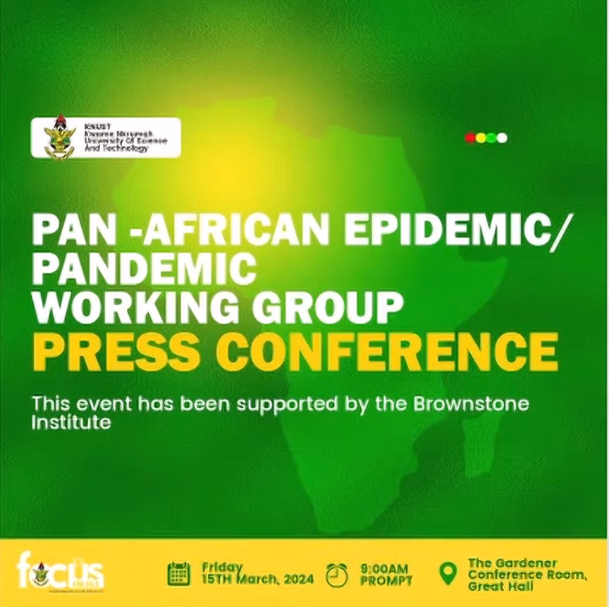 Панафриканская рабочая группа по эпидемиям/пандемиям Март 15, 2024 @ 9: 00 утра - 10: 00 утра Конференц-зал садовника, Большой зал Гана Пресс-конференция. Это мероприятие проводится при поддержке Института Браунстоуна.