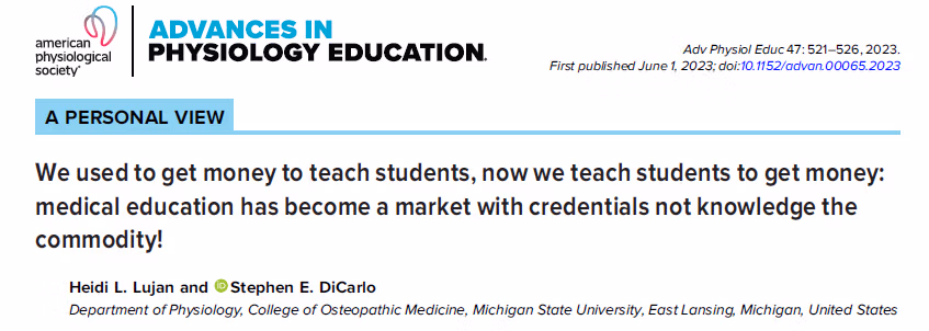 Эта тенденция является параллельной или, возможно, частью другого сдвига в медицинском образовании, который рассматривает студентов как потребителей, стремящихся приобрести медицинские дипломы, а не просто как студентов с высокими достижениями, которые заработали только возможность продолжить их. А недавно опубликованная статья Хайди Лухан и Стивен ДиКарло из Мичиганского государственного университета наконец-то рассматривают потребительскую модель медицинского образования и коллективный опыт меня и многих коллег в суровой перспективе.