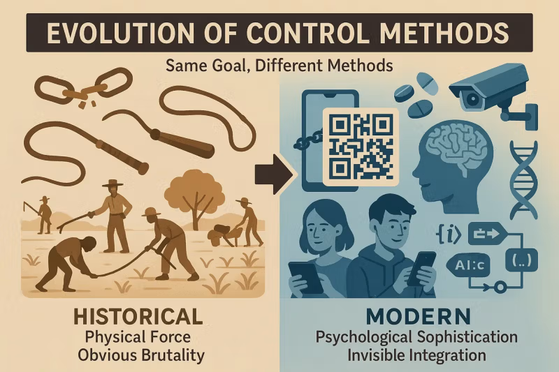 Сближение, которое я задокументировал в нескольких своих эссе, открывает нечто беспрецедентное: систему, в которой ваш правовой статус, технологические зависимости и биологические процессы интегрированы в единую архитектуру контроля. Современного раба не просто контролируют — он системно интегрирован на всех уровнях существования.