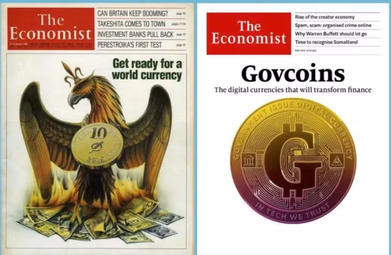 Траектория в сторону финансового контроля не была случайной. Команда экономиста На обложке 1988 года предсказывалось появление «мировой валюты». из пепла национальных валют к 2018 году — именно тогда, когда развитие криптовалют и CBDC ускорилось. К 2021 году то же издание отметило «Govcoins» как неизбежность, замена «In God We Trust» на «In Tech We Trust». Этот 33-летний переход от прогноза к празднованию раскрывает преднамеренный график ликвидации денежного суверенитета.