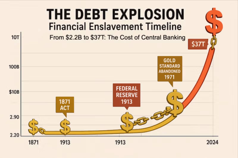 Государственный долг в размере 37 триллионов долларов Это не просто цифра — это залог, налагающий запрет на вашу будущую производительность. Вы не голосовали за этот долг, вы не можете его погасить, но вы юридически обязаны его обслуживать своим трудом.