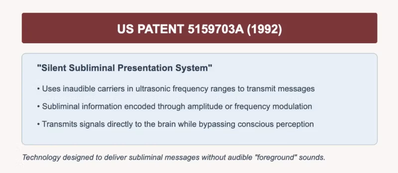 Патент США 5,159,703: Система бесшумной сублиминальной презентации. Посылает неслышимые сигналы прямо в ваше подсознание, обходя сознательное сопротивление.