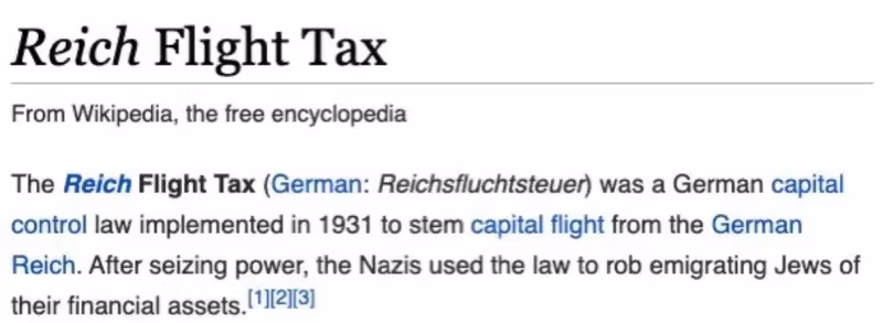 В 1931 году нацисты ввели имперский налог на бегство, чтобы лишить эмигрировавших евреев их имущества.
