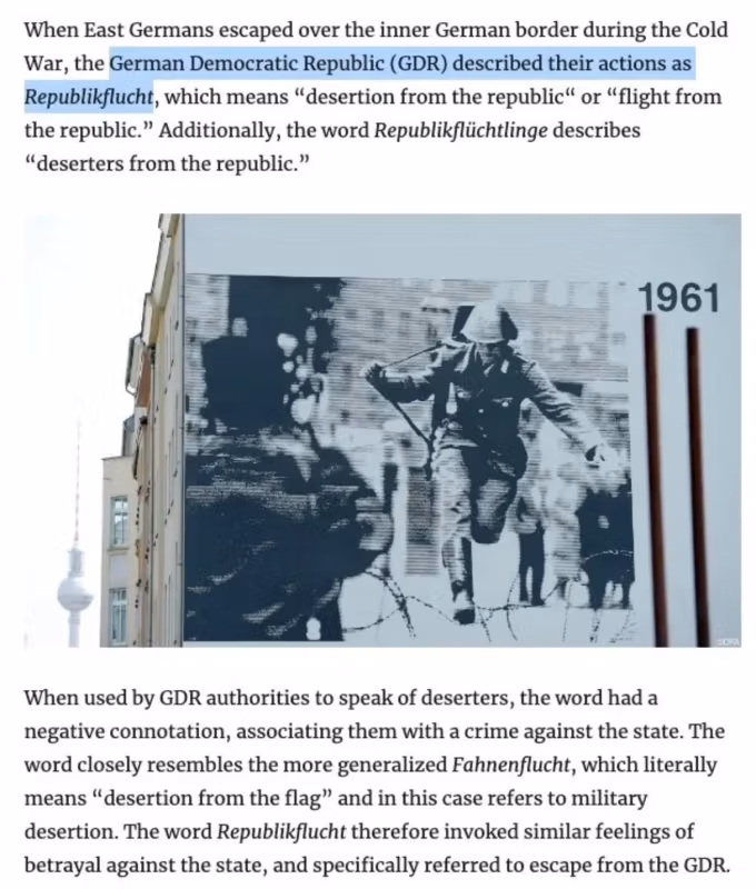 В Восточной Германии выезд из страны был признан уголовным преступлением как «дезертирство из республики».